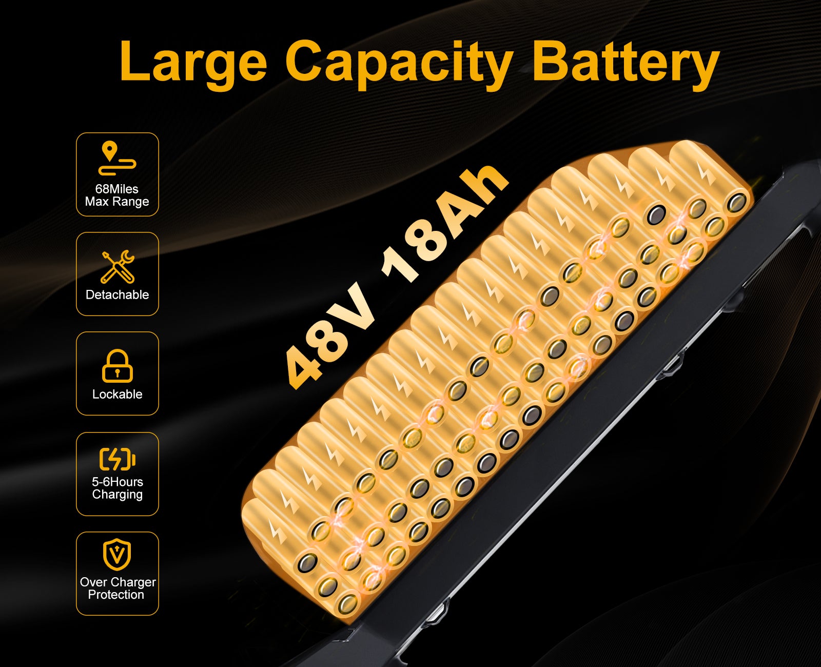 - 🔊Powerful Brushless 1500W Peak Motor&48V18Ah:The Vynxet electric bike with a 750W Brushless motor (peak 1500W),a large capacity 48V18Ah battery,it delivers strength, stability, and speed up to 32MPH.So you can reach your destinations swiftly, regardless of conditions.the long-distance for Vynxet ebike commutes or travel are no longer a challenge!